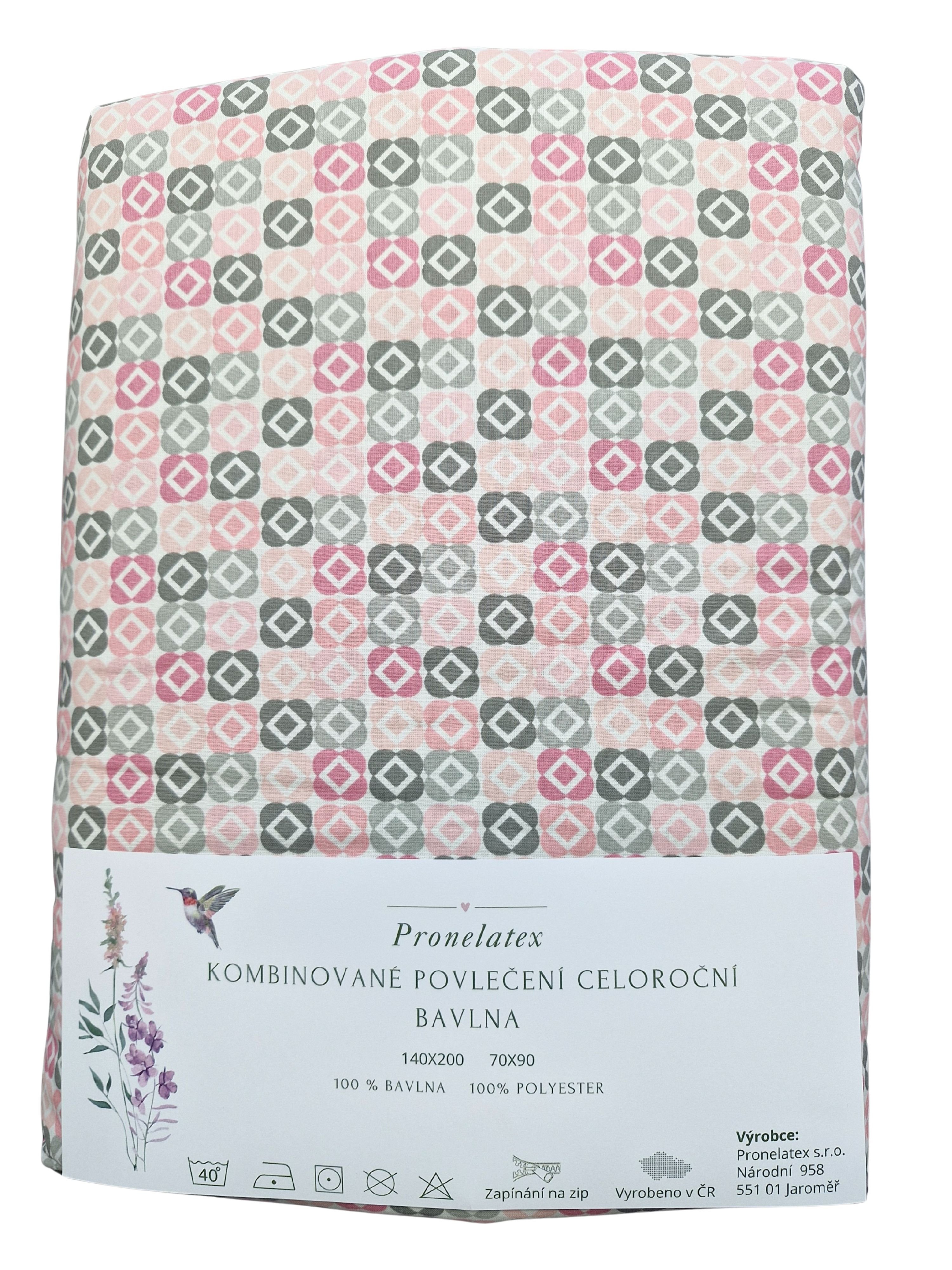 Mikroplyšové kombinované povlečení Růzový čtrvereček 140X200 70X90 … Viac
